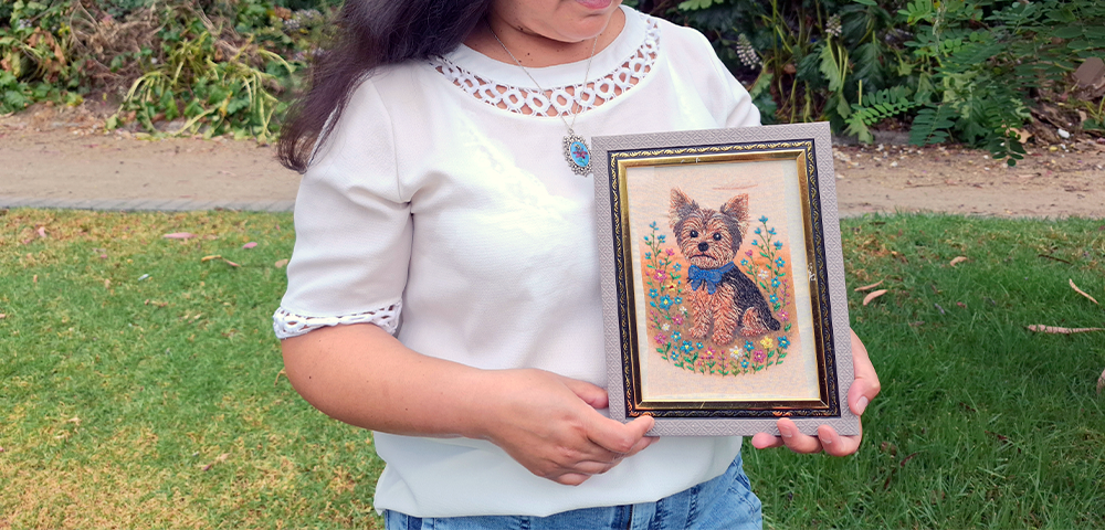 Celebra a tu regalón con un retrato bordado en la técnica de bordado alemán 3D