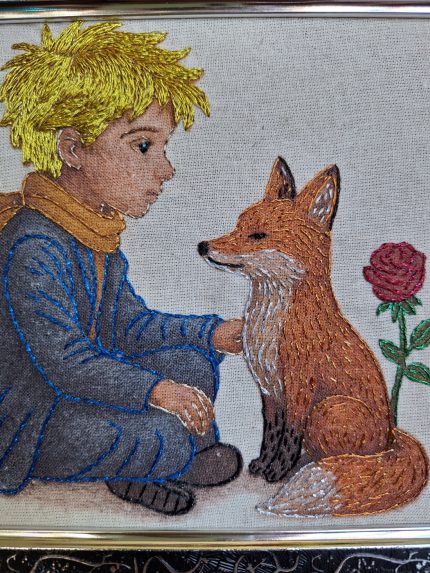 - Descripción: Obra bordada en técnicas mixtas que retrata un Yorky, capturando su carácter atento y su energía delicada. La combinación de materiales y puntadas aportan textura y brillo, dando vida a una pieza única que celebra el vínculo entre compañía, ternura y memoria.