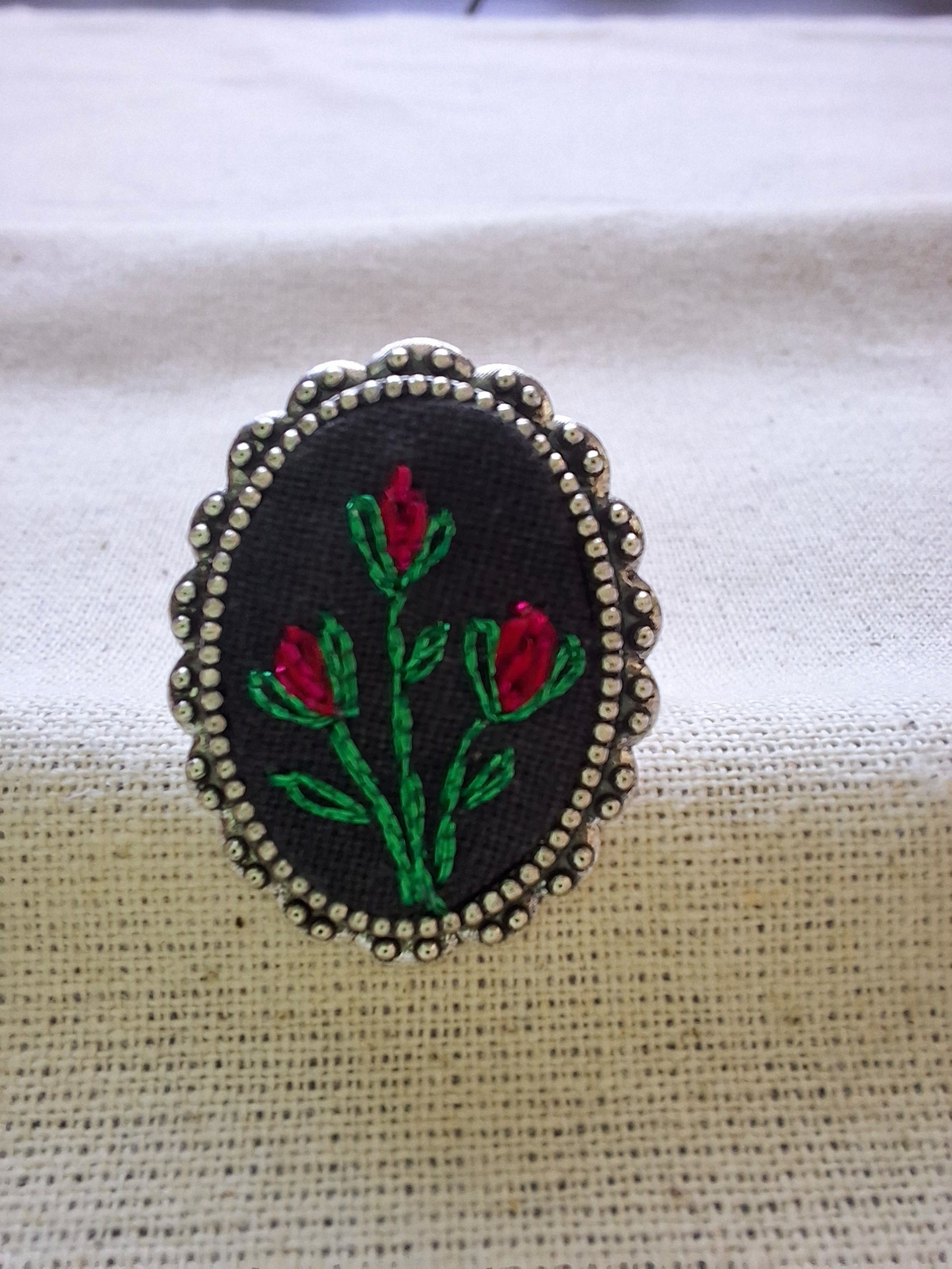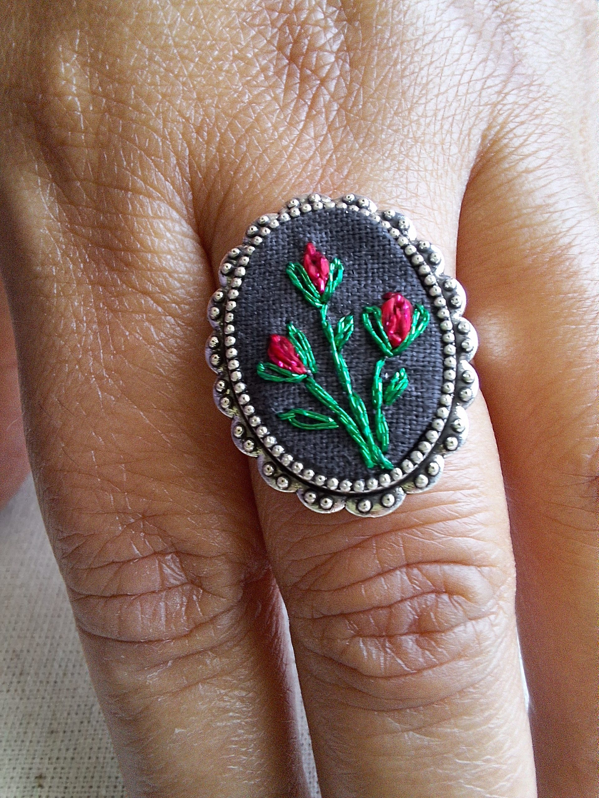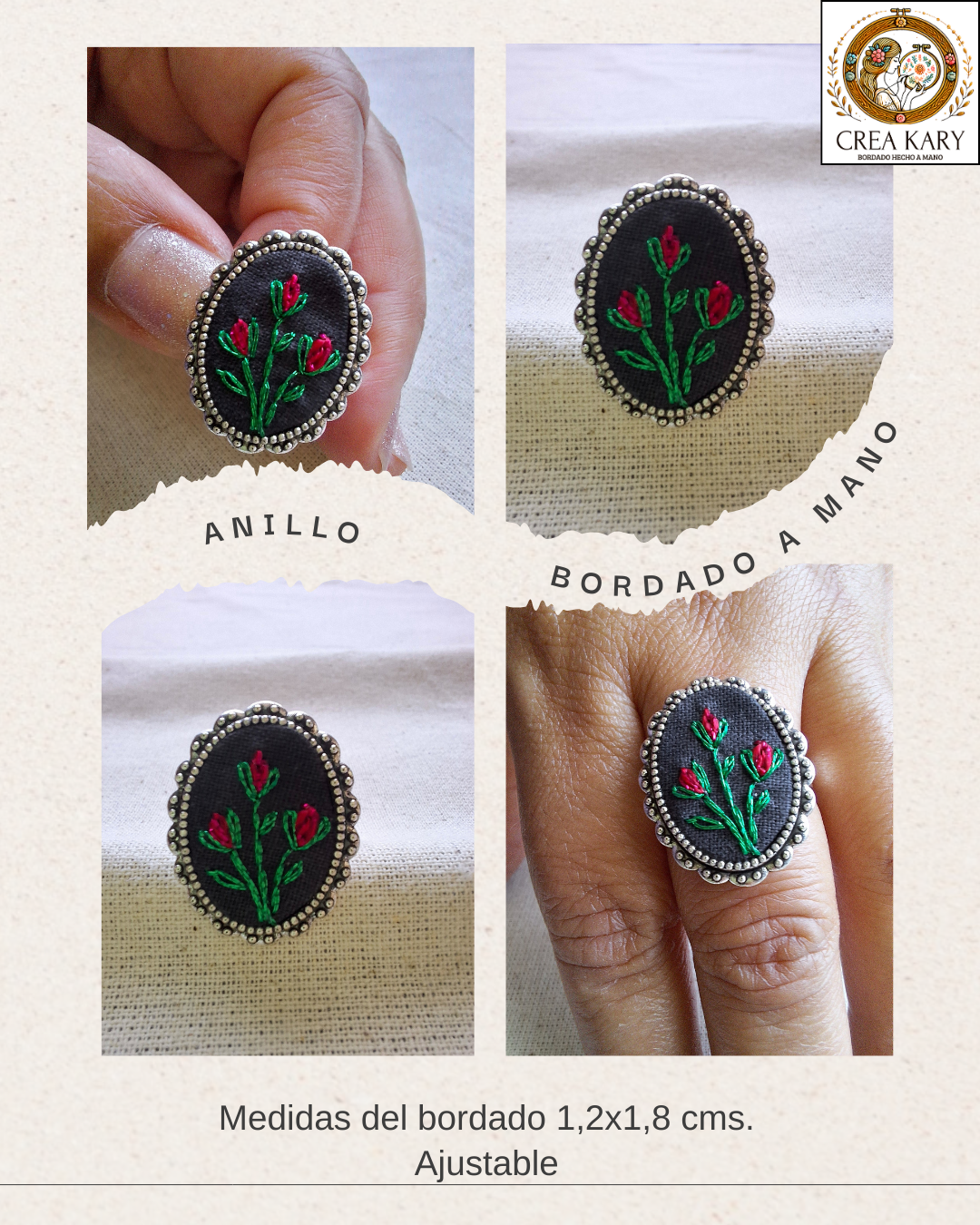 - Descripción: Anillo bordado a mano con hilos metalizados. Anillo cómodo y perfecto para el uso diario.