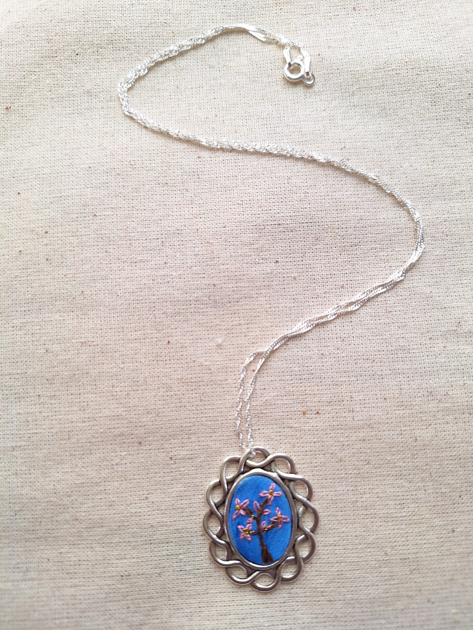 Joyas bordadas Colgante Susurro de Cerezo más cadena de plata
