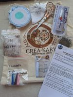 Con este kit puedes aprender a crear tus propias joyas. Incluye: 2 bases para joyas, 1 tijera, 2 agujas, 2 trozos de tela, pegamento, hilos, instrucciones para bordar y todo lo que necesitas para crear 2 joyas. Todo en una linda bolsa de Crea Kary